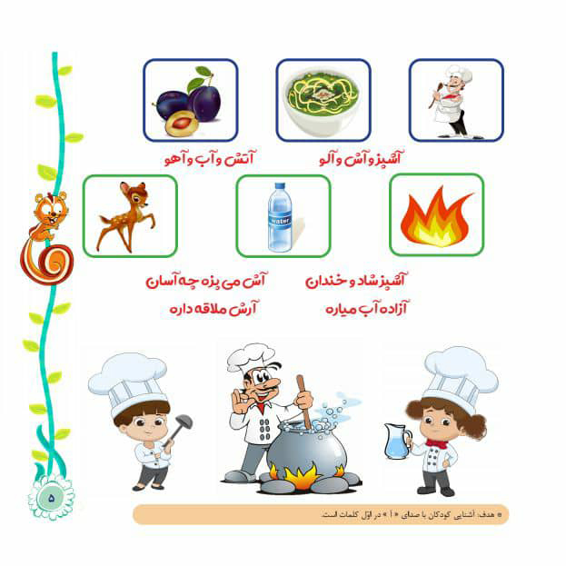. آوا شناسی در این کتاب روندی مناسب و منطبق با رشد ذهنی و زبانی کودک دارد.