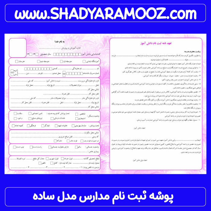 پوشه ثبت نام مدارس مدل ساده